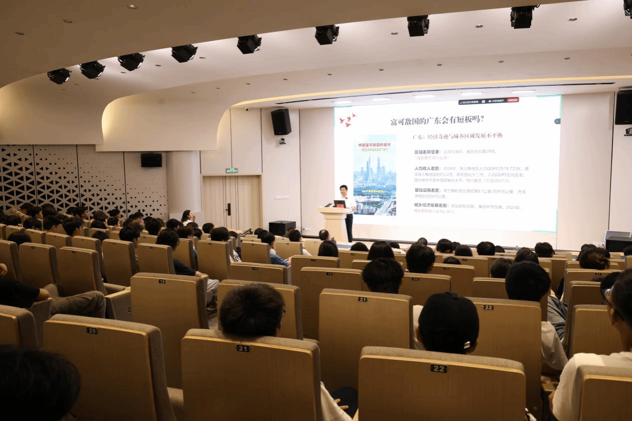 宋波表示,习近平总书记针对广东城乡区域发展不平衡问题指出“要坚持辩证思维,转变观念,努力把短板变成‘潜力板’”。在理论阐释的基础上,宋波将视角投向了广阔的南粤大地,结合大量实例讲述了广东在城乡区域协调发展方面所作的努力与取得的成就,指出城乡区域发展不平衡是现阶段广东经济社会发展中的突出短板。要通过党建引领城乡协同、科教人才助力县域、产业协同释放动能、绿色转型开辟路径等一系列举措,将这些“短板”区域打造成为内需增长的新空间、高质量发展的“潜力板”。宋波详细解读了如何以“百千万工程”服务广东高质量发展全局、构建新型工农城乡关系、重塑城乡区域融合新格局、推进生态型地区城乡融合发展的具体举措,还结合自身工作实践介绍了广东“百千万工程”三年来初见成效的案例,号召广大学子学好专业知识、用自身所学助力广东“百千万工程”。
