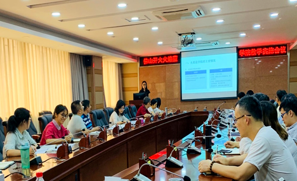 强南囡副主任代表开放教育处对佛山消防支队学员、营地教学设备调研的情况,以及依此结合佛山开大实际而制定的《“火焰蓝”学院教学实施方案》进行了详细的介绍和解读。强南囡副主任指出,针对学生分布散、营地时间管控严格的特点,施行“教师线上导学答疑+学生自学”的教学模式,从“课程学习指引”“课程辅导”“课程考核”三大教学模块,以直播、非实时视频、微课、文档、PPT等方式实施教学。