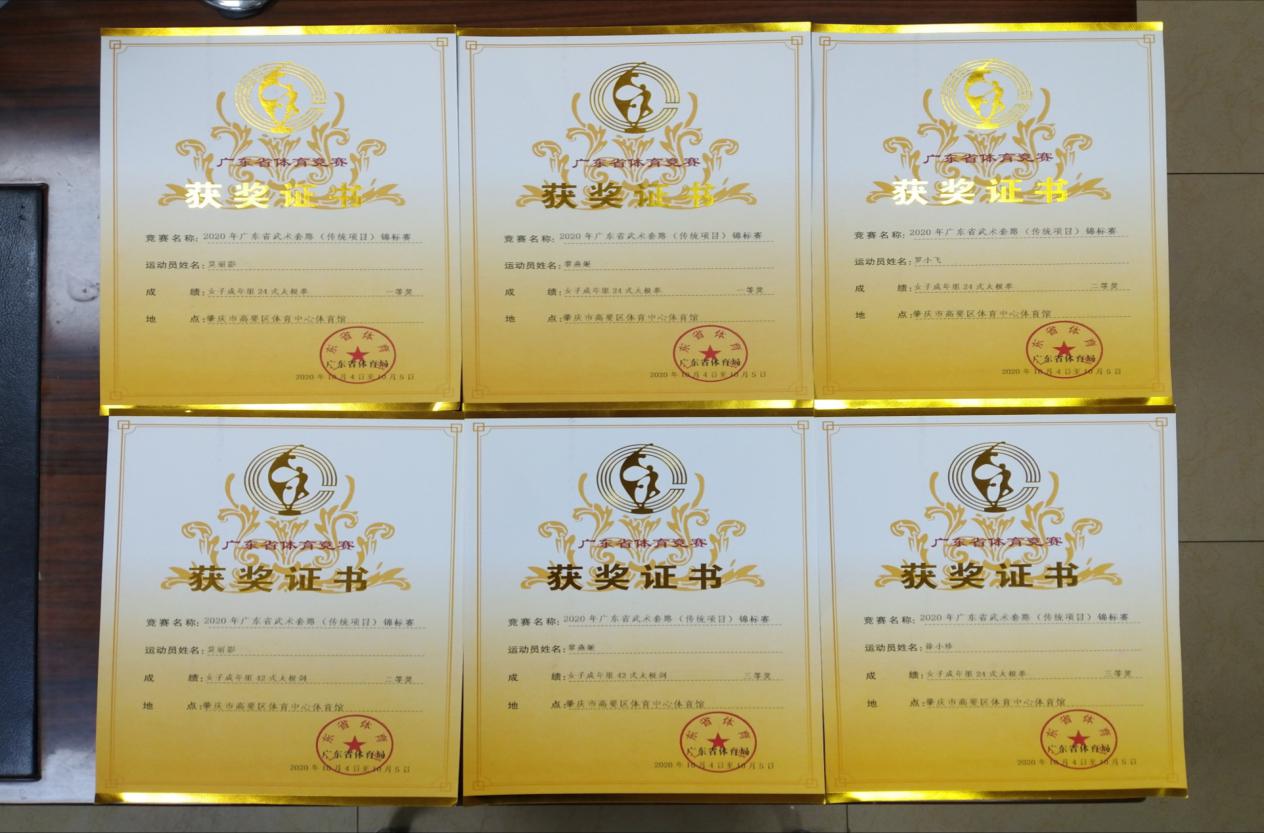 为广泛开展全民健身运动,弘扬中华传统文化,由广东省体育局主办,广东省社会体育中心、广东省武术协会、肇庆市文化广电旅游体育局协办的2020年广东省武术套路(传统项目)锦标赛于10月2日至5日在肇庆市高要区体育中心举行。怀集县开放大学(广东老年大学怀集学院)太极拳队在比赛中发挥出色,获得了二金二银二铜的好成绩!