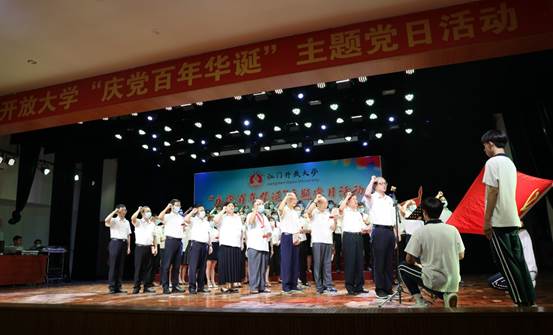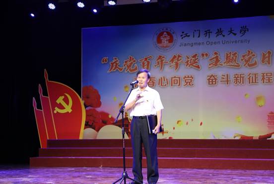 6月25日下午,江门开放大学以“庆党百年华诞”为主题,举行党史学习教育主题党日活动。市委党史学习教育第九巡回指导组组长谢阳禄、组员郭清雅,多宝手机网页版登录入口党政领导班子成员、全体教职工、离退休党员代表、学生代表参加了活动。