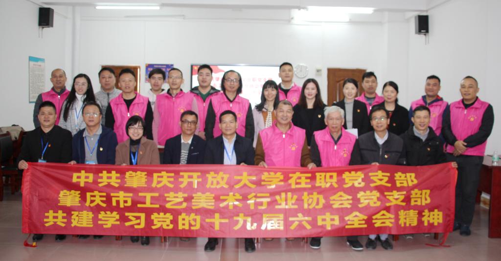 12月3日上午,肇庆开放大学在职党支部与肇庆市工艺美术行业协会党支部开展结对共建,进一步学习贯彻党的十九届六中全会精神座谈会,构建“资源共享、优势互补、互相促进、共同提高”的党建工作新格局。 多宝手机网页版登录入口党总支书记、校长罗红金,副校长张青青、黎志强,肇庆市工艺美术行业协会专职副会长兼秘书长郑天旭、党支部书记杨智麟、监事长黄超洪出席。多宝手机网页版登录入口在职党支部书记全永松主持,双方党支部党员代表参加。