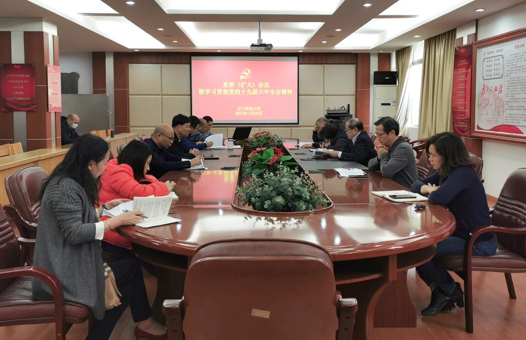 11月22日,江门开放大学召开专题党委(扩大)会议,深入传达学习贯彻党的十九届六中全会精神。江门开放大学全体领导班子、中层以上干部、各党(总)支部委员参加会议。江门开放大学党委书记吴军主持会议。
