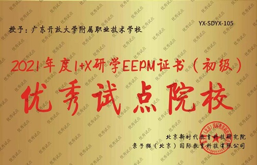 近日,从教育部“1+X”研学旅行策划与管理职业技能等级证书评价机构传来喜讯,广东开大附属职校被授予2021年度“1+X”研学EEPM证书(初级)“优秀试点院校”。全国仅有10所试点院校获此荣誉。