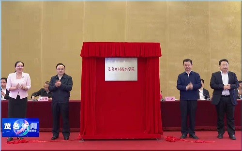 3月23日,在由中共茂名市委、市政府组织召开的全市人才工作会议上,受市委书记、市人大常委会主任袁古洁委托,市委副书记、市长庄悦群,市委副书记、组织部长王创,市农业农村局(乡村振兴局)党组书记、局长车东耀,茂名开放大学党委书记、校长董艳清共同为茂名乡村振兴学院揭牌。