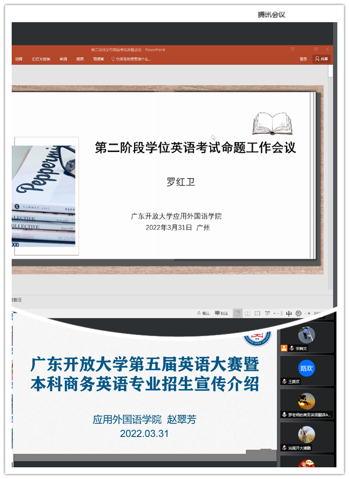 3月31日下午,应用外国语学院通过腾讯会议组织召开多宝手机网页版登录入口(以下简称广开)学位英语考试题库建设及考务工作在线会议。广开英语专业教学团队成员参加会议,会议由应用外国语学院院长彭伟强主持。
