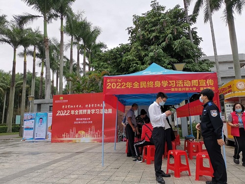 11月22日上午,由惠东县开放大学主办,惠东县公安局、中国移动通信集团广东有限公司惠东分公司协办的终身学习理念、《反电信网络诈骗法》普法宣传宣讲活动在县城南湖公园举行,拉开了惠东县2022年全民终身学习活动周的序幕。