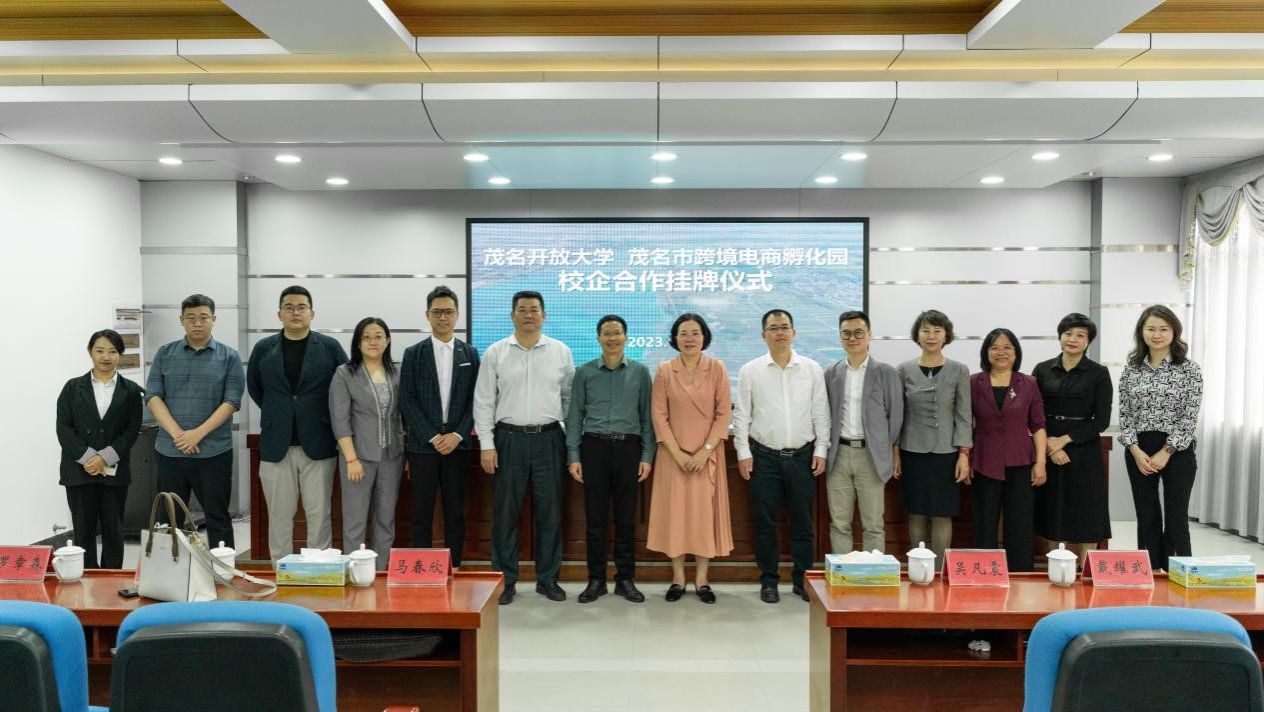 近日,茂名品牌创新研究院揭牌仪式暨市跨境电商孵化园校企合作单位挂牌仪式在茂名开放大学举行。茂名开放大学党委书记、校长、茂名乡村振兴学院院长董艳清,市农业农村局党组成员、副局长邹国兵,市商务局党组成员、副局长杨祥,市品牌创新研究院院长樊富华,市跨境电商孵化园主任罗章森,以及茂名开大校领导班子和电子商务专业学生等参加揭牌仪式。