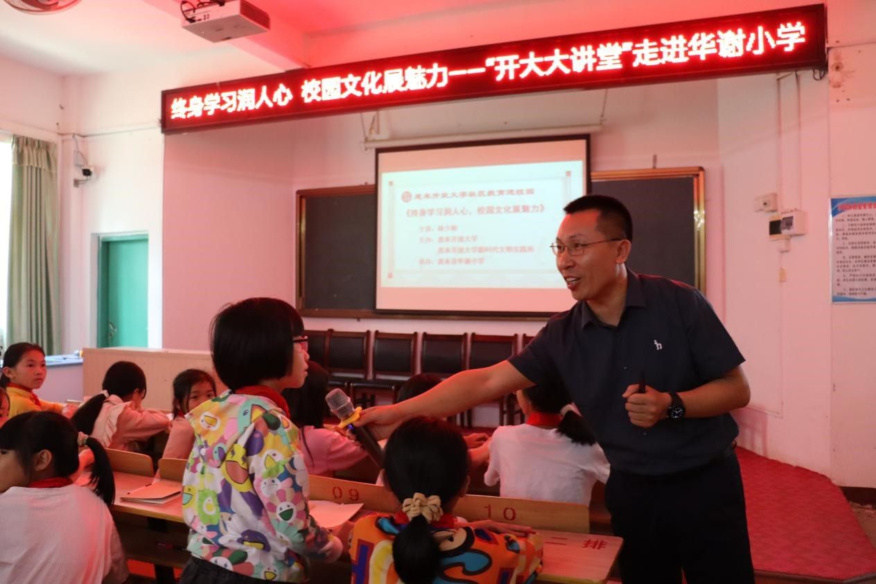 近日,惠来开放大学邀请惠来县第三届道德模范“最美人物”林少彬先后到实验小学和华谢小学开展“终身学习润人心,校园文化展魅力”社区教育进校园系列活动。