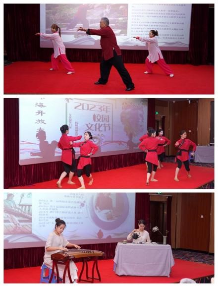 活动由中山工贸技工多宝手机网页版登录入口教学点的学生舞蹈队,珠海开放大学特聘培训师、杨氏太极拳第五代传人李湘河老师分别带来的蒙古族舞蹈《希格希日》与杨式太极二十八式表演拉开帷幕。古筝演奏家叶子老师与高级茶艺师齐丹老师的古筝伴奏茶艺表演,将开幕式推向了高潮。活动精彩纷呈,为现场的师生献上一场高雅的艺术盛宴。