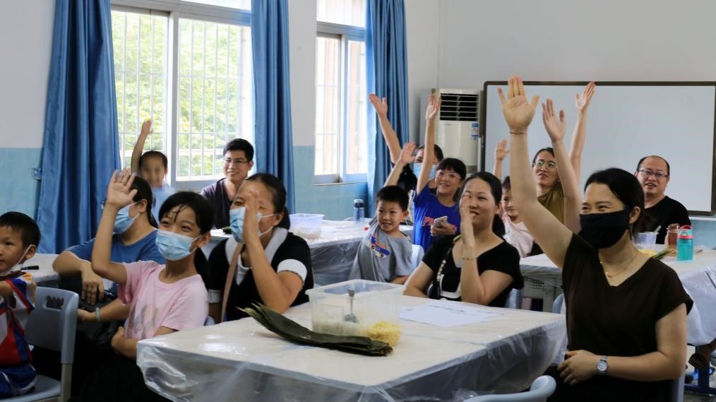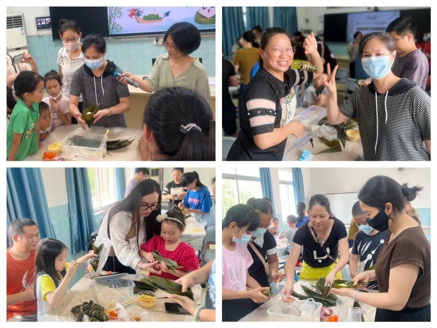 活动从了解端午节的起源,包粽子、赛龙舟、做香囊的传统习俗等方面开展。活动现场进行了知识问答环节,五组队员都赢取到各种各样的粽子制作材料。随后,学生们在老师的指导下,动手制作了一个个可爱的粽子,还表示要将包好的粽子带回家,与亲人一同分享劳动成果,感受浓浓的节日气氛。
