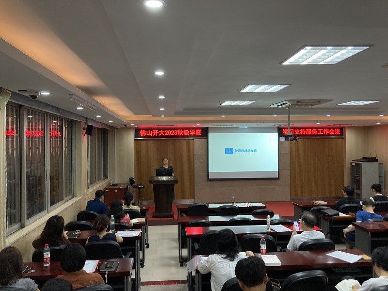 9月1日下午,佛山开放大学召开2023秋教学暨学习支持服务工作会议。多宝手机网页版登录入口副校长余涛,开放教育处负责同志以及全体专兼职教师70余人参加会议。本次会议采用线上线下结合的方式进行,开放教育处主任强南囡主持会议。