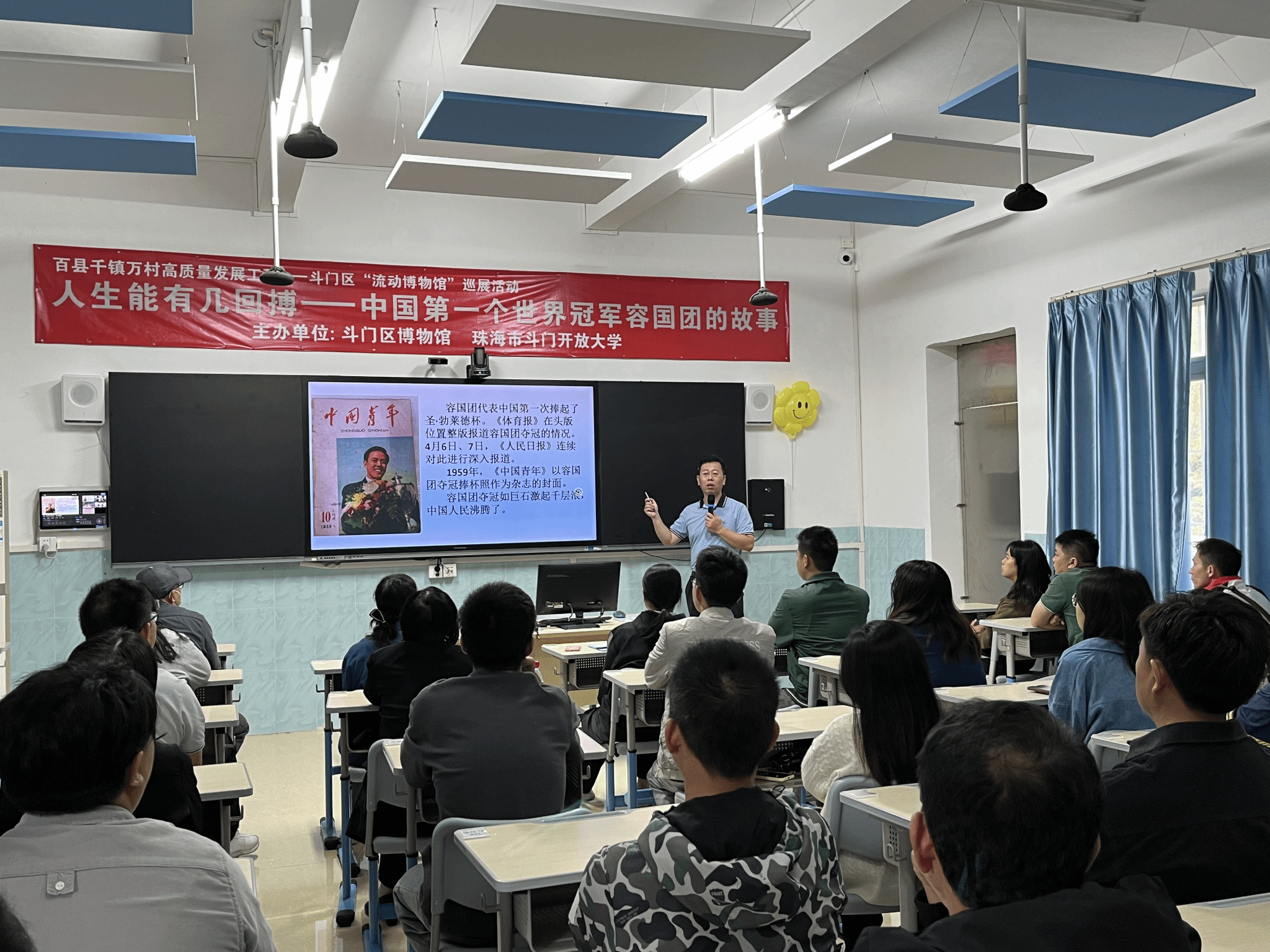 10月29日,珠海市斗门开放大学联合珠海市斗门区博物馆,举办了一场别开生面的爱国主义教育思政大课堂活动。课堂主题是《人生能有几回搏---中国第一个世界冠军容国团的故事》,珠海市政协《珠海文史》编委李琛受邀主讲。