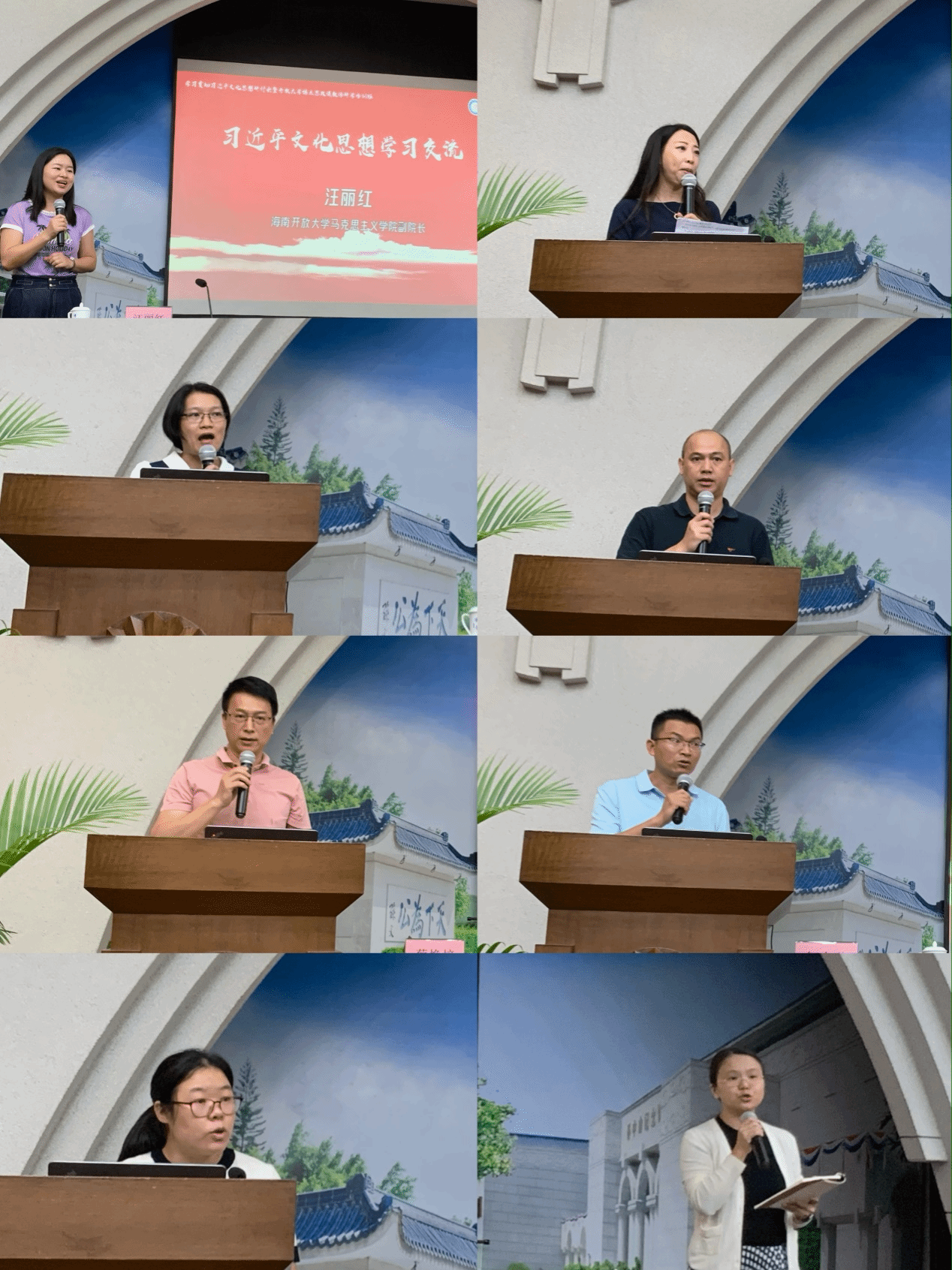 听完专家辅导,老师们纷纷畅谈学习体会。海南开放大学马克思主义学院副院长汪丽红表示,作为思政课教师,要第一时间学深悟透习近平文化思想的精神实质,并有机融入到思政课教学之中,引导学生坚定文化自信。“以中华优秀传统文化为底蕴,营造全面终身学习文化氛围,习近平文化思想不仅为新时代终身学习文化建设提供了理论指导,也为推动构建学习型社会提供了强大精神动力。”佛山开放大学教师刘春水如是说。“我将把这次培训学到的知识带回去,努力和同事们不断创新教学方法,依托茂名柏桥讲堂和爱国主义教育实践基地,让学生们深入认识国情,增强对中华优秀传统文化的自信心,让爱党爱国爱社会主义的情怀深深扎根青年学子心中。”茂名开放大学教师谭玉萍说。