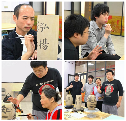 作品由师生到薪火相传五百年的佛山石湾南风古灶创作,以釉代墨,化泥为纸,并历经千度烈焰烧制而成,实现了书法与陶艺的结合。作品很好地借助石湾陶艺产区的技术优势,并对大赛主题进行了艺术化的诠释。