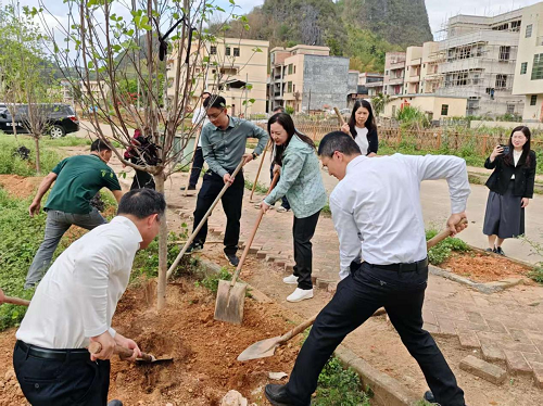 春风唤新绿,植树恰逢时。近日,阳江开放大学党委书记陈伟荣率党员代表前往阳春凌霄岩,开展义务植树主题党日活动,深入学习贯彻习近平生态文明思想,积极响应阳江市委、市政府关于实施“百千万工程”和绿美阳江生态建设的部署要求,充分发挥多宝手机网页版登录入口党员干部先锋模范作用,以实际行动动员全体党员投身于绿美乡村生态建设,共同绘就绿美阳江新画卷。
