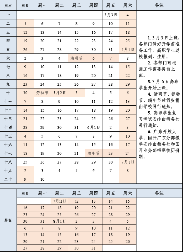 2022-2023学年第二学期校历