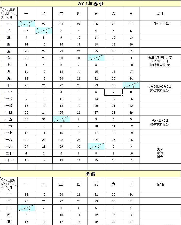 中央广播电视大学2011年春季校历