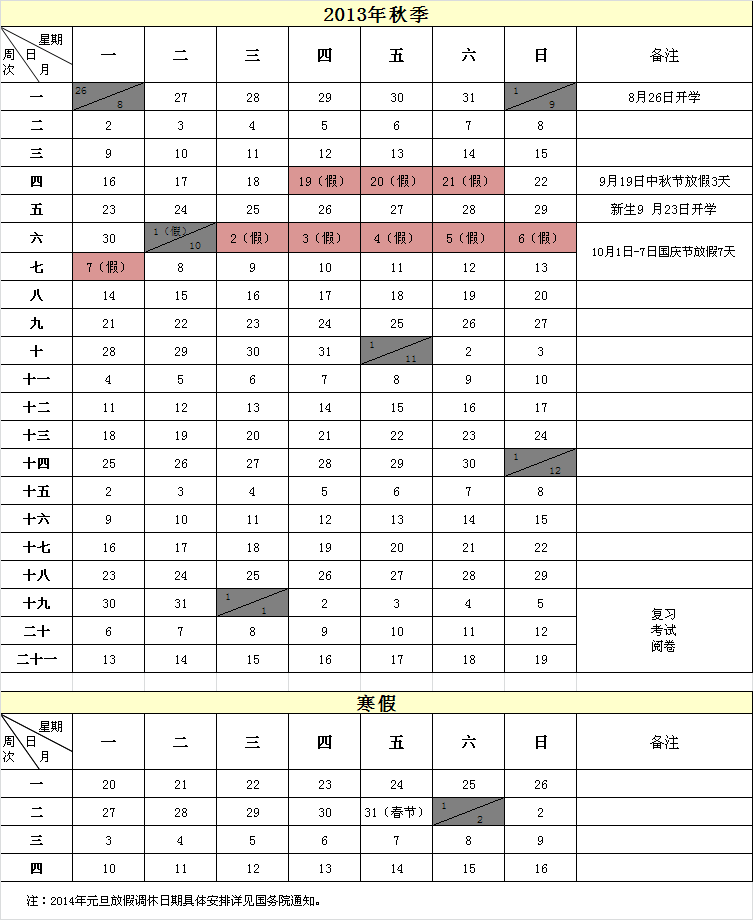 国家开放大学(中央广播电视大学)2013年秋季校历