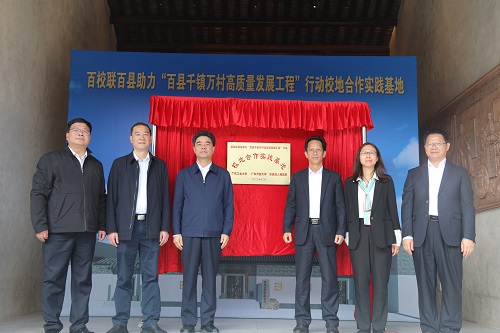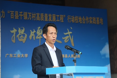 12月9日,东源县、广东工业大学与多宝手机网页版登录入口三方共建的“双百行动”校地合作实践基地揭牌仪式在东源县仙塘镇红光村举行,深入贯彻落实习近平总书记视察广东重要讲话、重要指示精神,推动百校联百县助力“百县千镇万村高质量发展工程”行动(以下简称“双百行动”)打开新局面。广东工业大学党委书记胡钦太,多宝手机网页版登录入口党委副书记谢锦群,河源市委副书记吴青川、副市长谢春艳,东源县委书记秦卫民,县长刘大荣出席仪式并为基地揭牌。河源市委实施“百千万工程”第二指导组及东源县领导邓山、林俊超、邹元清、张松新、陈飞燕,两所高校、市县有关部门负责同志,广东工业大学及多宝手机网页版登录入口驻东源服务队成员等出席仪式。仪式由县长刘大荣主持。