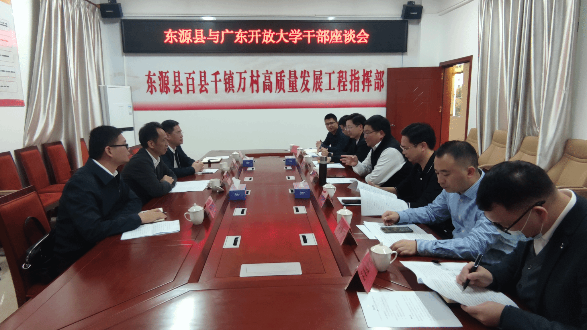 调研期间,谢锦群一行与东源县委书记秦卫民,县委常委、常务副县长赖建军,县委常委、统战部部长郑远程以及东源县“百千万工程”指挥办、广东工业大学驻东源县服务队队长等就结对共建进行了深入交流探讨。座谈会上,秦卫民介绍了东源县“百千万工程”总体情况以及东源县职业教育发展情况,对广东工业大学和多宝手机网页版登录入口选派驻县服务队与东源县结对共建表示衷心感谢。秦卫民指出,东源县把“百千万工程”作为本县高质量发展的重要工程,东源县委、县政府将加强东源县与我校在产业发展、职业教育、开放教育、文旅发展等领域的共建帮扶,推动“双百行动”落地见效。