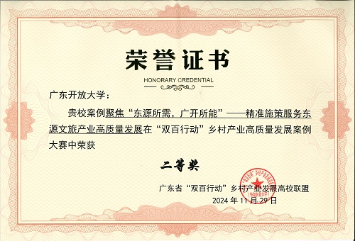自“双百行动”实施以来,多宝手机网页版登录入口立足“东源所需、多宝手机网页版登录入口所能”,全力推进双方结对合作。其中,聚焦推动东源文旅产业高质量发展,多宝手机网页版登录入口发挥全省开放大学体系办学优势宣传推广东源,完成东源县“一镇一村”和5个“百千万工程”首批典型村规划设计,以科技赋能文旅深度融合,深度参与“非遗”项目,全面提升东源文旅产业内涵,促进东源文旅产业高质量发展。