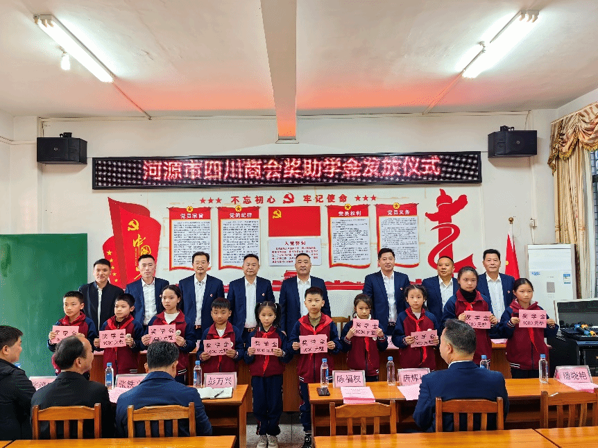 本次活动为受资助的柳城中学、柳城中心小学20名优秀学生发放了奖学金。周奇积极发动社会资源助力“百千万工程”,联系对接河源市四川商会,并促成该商会与柳城镇签署了结对共建框架协议。